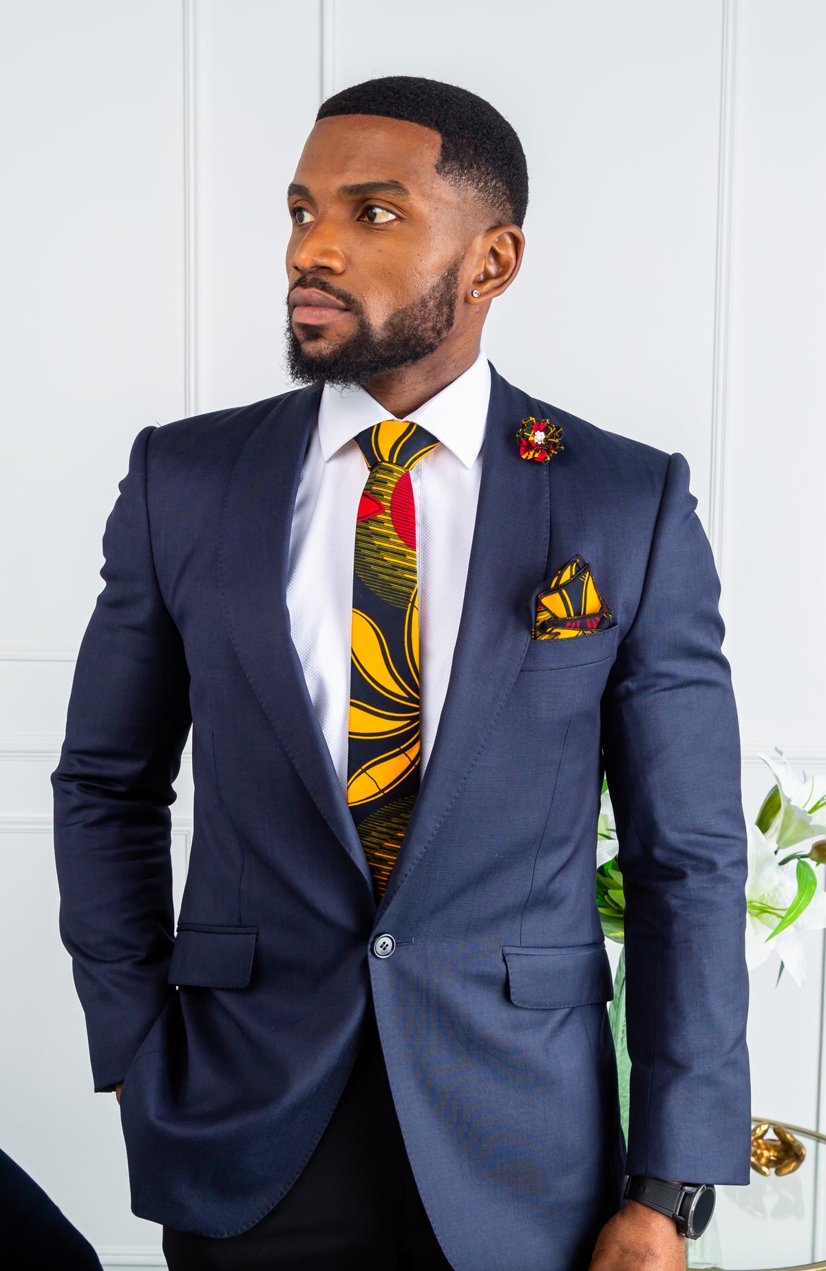 Complete your look with our statement African print tie sets. These wonderful five piece Ankara tie sets look great teamed with your favourite suit jacket.