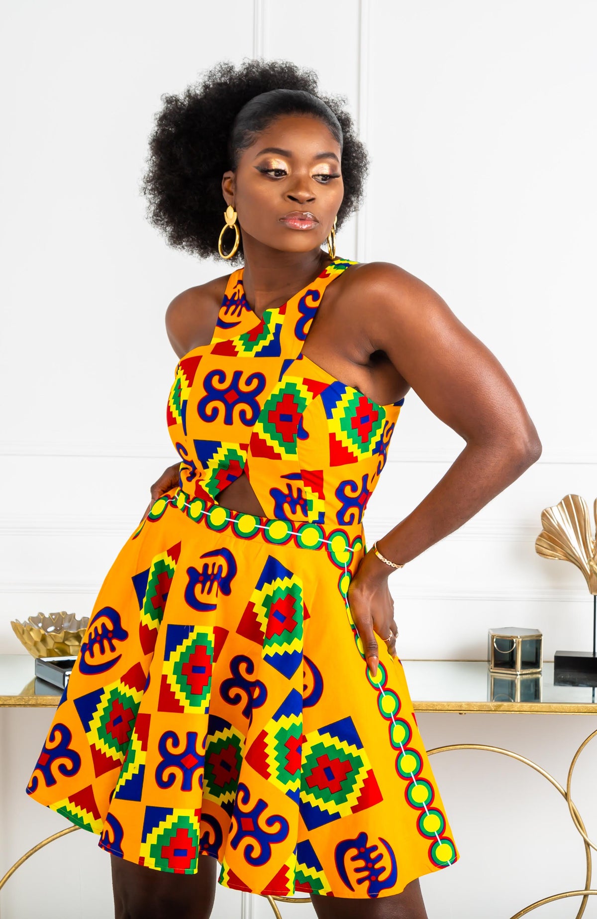 Traditional Kente African Print Plunge Neckline Mini Dress - KENYA