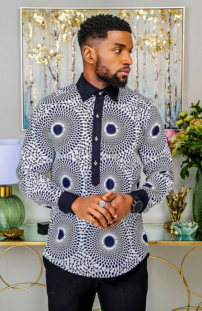 African Shirts for Men | Mens African Shirt - Mens Long-sleeve Polo - Alexander