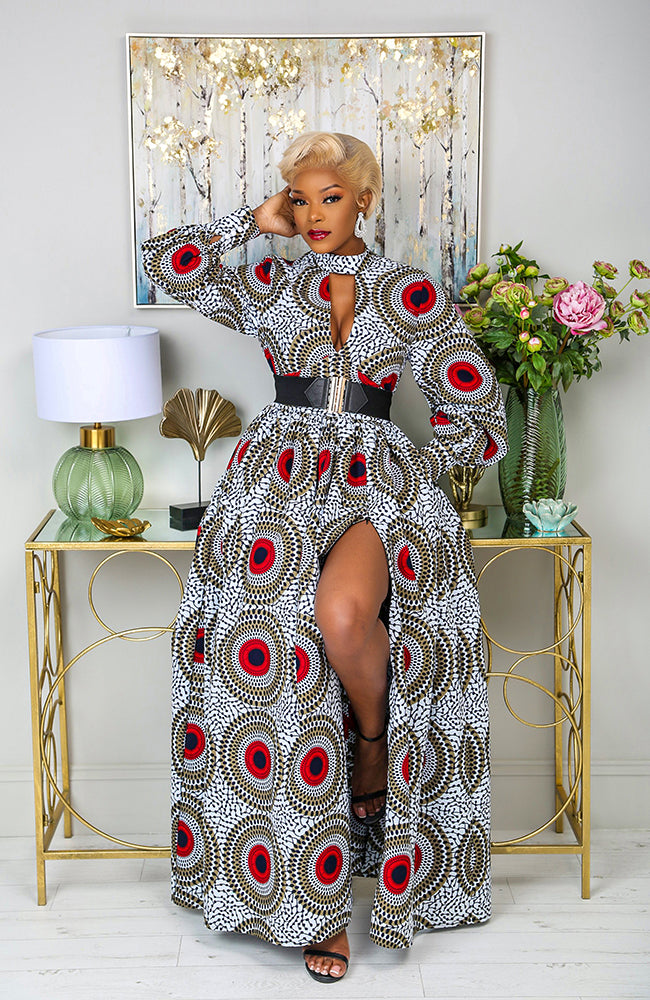 Low Neck Deep V Long Sleeve | African Maxi Dress - KENYA